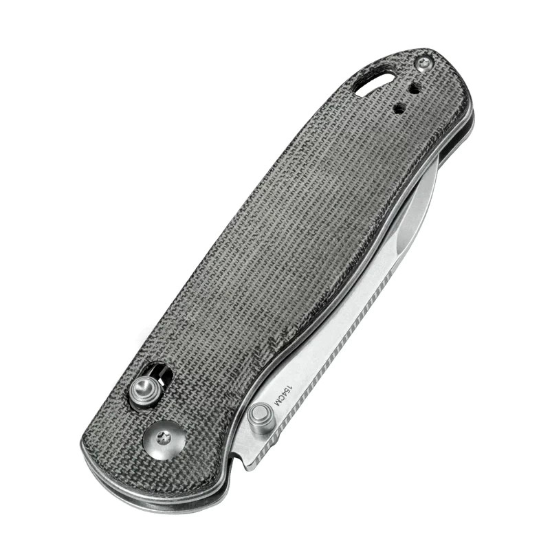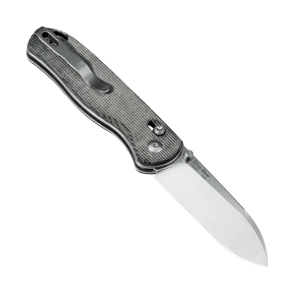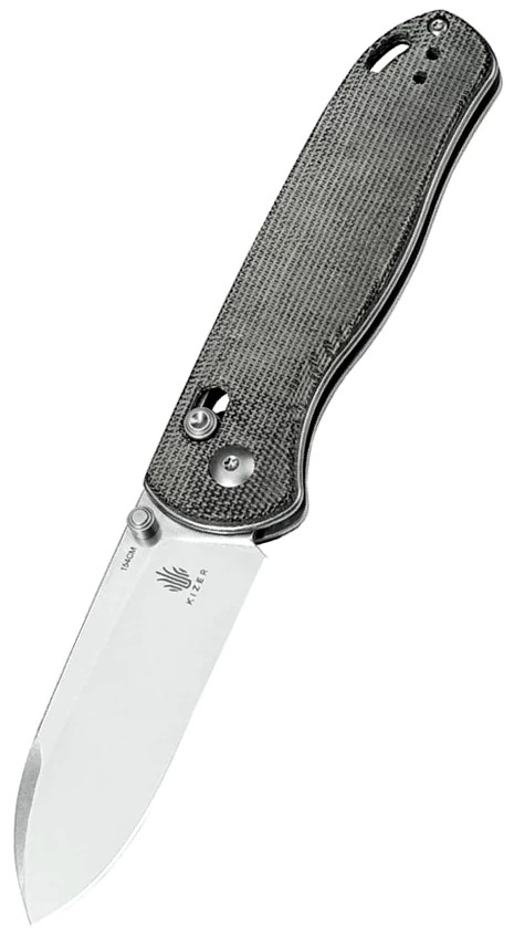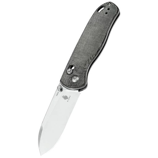 KIZER Drop Bear Clutch Lock Micarta zsebkés egy praktikus bicska mindennapi használatra. Markolatpanelek micartából készültek és egy masszív acél kereten fekszenek mely fekete színt kapott. A penge az amerikai 154CM-ből készült melynek igen kiemelkedő a korrozióállósággal rendelkezik és drop-point formával rendelkezik.