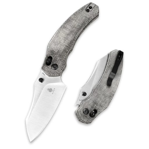 A kés pengéje 154CM rozsdamentes acélból készült, amely jó éltartást és korrózióvédelmet kínál. A penge sheepsfoot formájú, élvezetessé teszi a precíz vágást. A nyitást thumb stud (kis hüvelykujjal kezelhető kitüremkedés a penge tövében) segíti elő, míg a clutch lock mechanika (forgócsapos retesz) stabil reteszelést biztosít használat közben. A stabil, szürke micarta markolat könnyű, ugyanakkor csúszásmentes fogást ad még nedves vagy hideg kézben is. A tip‑up klipsz mélyen ül a markolaton, és jobb- vagy balkezes konfigurációban is viselhető.