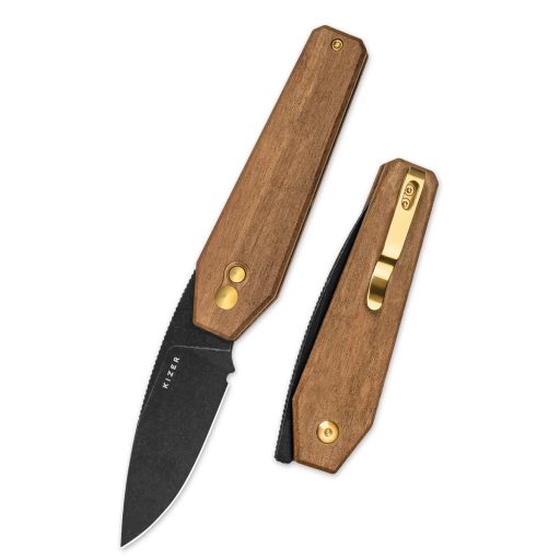 A Kizer Tomb Nitro-V Mkuruti Wood tökéletes választás azoknak, akik egy elegáns, mégis különleges stílusú prémium EDC-kést keresnek. A drop-point pengeforma sokoldalúságot biztosít, akár csomagbontásról, akár finom vágásokról van szó. A Nitro-V acél kiemelkedő korrózióállóságot és élmegtartást nyújt, így kültéri használatnál is megbízható. A front flipper nyitás kényelmes egykezes alkalmazást tesz lehetővé, a button lock zár pedig állandó biztonságot garantál. A “coffin shape” Mkuruti markolat pedig vizuális különlegességet és stabil kezelhetőséget ad, ami miatt gyűjtőknek és stílustanúsításra törekvő EDC-rajongóknak is kiváló választás.