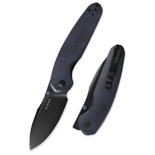 A kés súlya 104 gramm , ez a méretéhez képest kiegyensúlyozott tömeg, ami nem terheli meg a zsebet, de mégis stabil tartást nyújt kézben. A klipsz négyféle pozícióban szerelhető : jobb vagy bal oldalra, hegye felfelé vagy lefelé néző módon, így minden hordási preferenciához igazítható. A klipsz típusa deep carry , tehát a kés mélyen ül a zsebben, nem hivalkodó, de gyorsan elérhető. A modellt Evgeniy Bulychev orosz késkészítő tervezte, a gyártás pedig a Kizer saját kínai gyártóüzemében zajlik, ahol minden darabot gondos minőségellenőrzés mellett szerelnek össze.