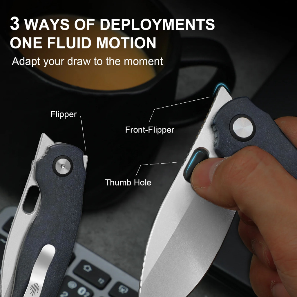 Ez a modell különösen azoknak ajánlott, akik egy prémium minőségű, mégis hordható és funkcionális zsebkést keresnek — lehet szó mindennapi hordásról (EDC), városi használatról vagy könnyebb outdoor tevékenységekről. A drop point pengeforma és az 14C28N acél együttesen megbízható teljesítményt nyújt csomagok bontására, kötélmetszésre vagy élelmiszerek előkészítésére. A hollow grind köszörülés révén a vágás gördülékenyebb, míg a 76,8 g-os súly révén a kés minimális terhet jelent hordás közben. A Richlite® markolat stabil fogást biztosít még nedves vagy hideg kézben is, a háromféle nyitási mód és a deep carry csíptető pedig lehetővé teszi a gyors és diszkrét használatot. Ha egy olyan zsebkést keresel, amely anyagminőségben, funkcióban és hordhatóságban is prémium szintet képvisel, akkor ez a modell hosszú távra megbízható társ lehet.