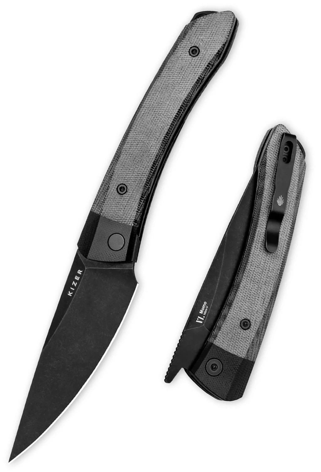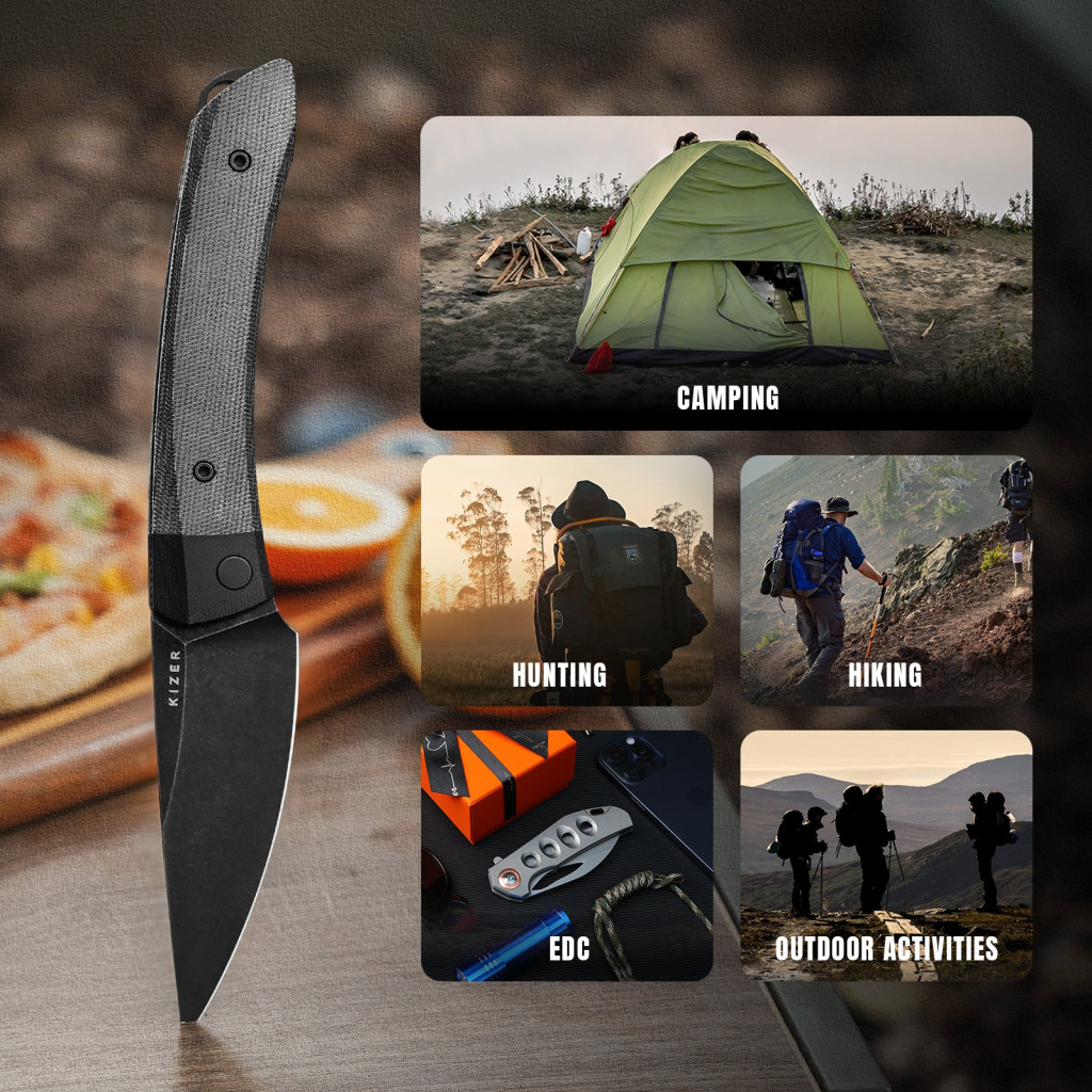 A KIZER Momo AllBlack G-10 and Micarta zsebkés a nagyobb méretű zsebkések kedvelőinek készült, hiszen 237 milliméteres teljes hosszával és 132 grammos súlyával a kategória egyik legrobosztusabb, mégis elegáns darabja. A diszkrét hordozhatóságot a mélyen ülő, rozsdamentes acél zsebklipsz (Deep-carry clip – a zseb szélére mélyen felfekvő rögzítőfül) biztosítja, amely Tip-up (pengeheggyel felfelé néző) viselést tesz lehetővé a jobb oldalon. A markolat végén kialakított zsinórfurat (lanyard hole) további lehetőséget ad rögzítőzsinórok felhelyezésére, növelve az eszköz személyre szabhatóságát és a biztonságos munkavégzést. Ez a modell kiváló választás mindazoknak, akik egy funkcionális és látványos kést keresnek, amely a konyhai feladatoktól kezdve a mindennapi kihívásokig mindenhol megállja a helyét. Aki ezt a V4663A1 modellt választja, az az innovatív késtechnológia és a professzionális tervezés egy olyan időtálló darabját birtokolja, amely évtizedekig megbízható segítőtársa marad tulajdonosának.