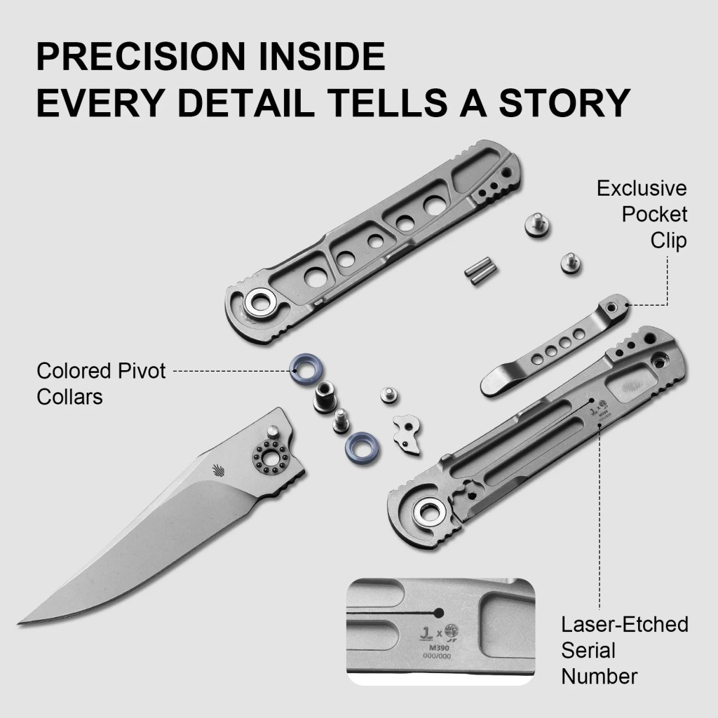 A KIZER Feist 2 X Series M390 Titanium Clip Point modern, letisztult zsebkés, ami azoknak készült, akik értékelik a minimalizmust, a precizitást és a prémium anyaghasználatot. A titán markolat diszkrét, elegáns megjelenést kölcsönöz, miközben a penge M390 acélja gondoskodik róla, hogy a kés ne csak szép legyen — hanem funkcionális és megbízható is. Amikor előkapod, azonnal érezhető, hogy egy jól átgondolt, mindennapi hordásra tervezett EDC-darabbal van dolgod.